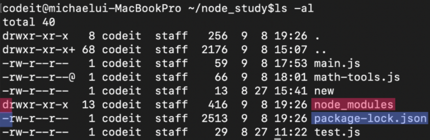 - 서드파티 모듈 설치시, 작업하던 디렉토리 안에 package-lock.json파일과 node_modules라는 디렉토리가 생성됨