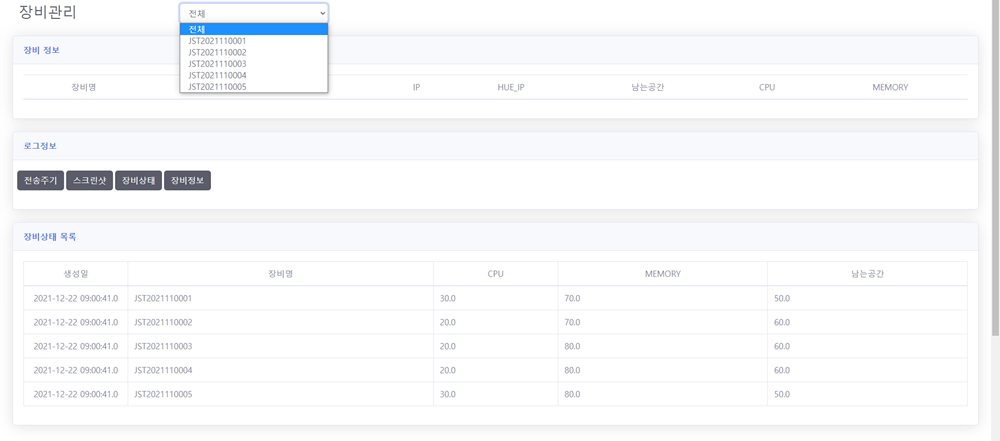 - index.jsp 장비관리 메뉴를 클릭하면 전체 장비 조회가 기본값으로 selected, 다른 장비도 선택할 수 있어야함