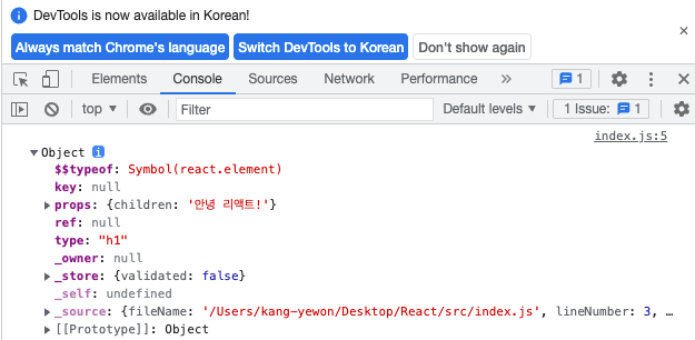 ReactDOM.render(<h1>안녕 리액트!</h1>, document.getElementById('root'));
