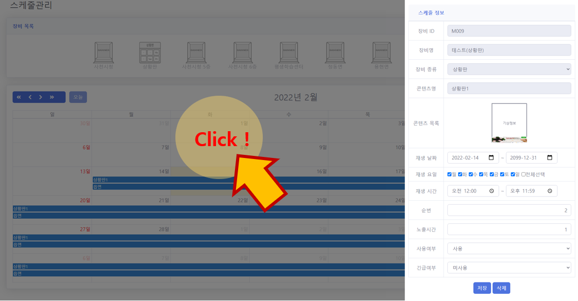 장비별 스케줄 팝업 창에서 데이터 조회, 저장, 수정, 삭제 시 해당 장비의 스케줄만 갱신되어 조회 되도록 수정함