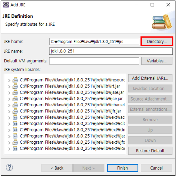 경로가 JRE로 잡혀있는 것이 확인된다.