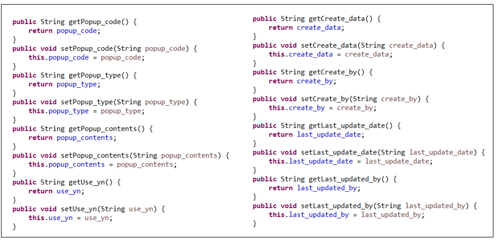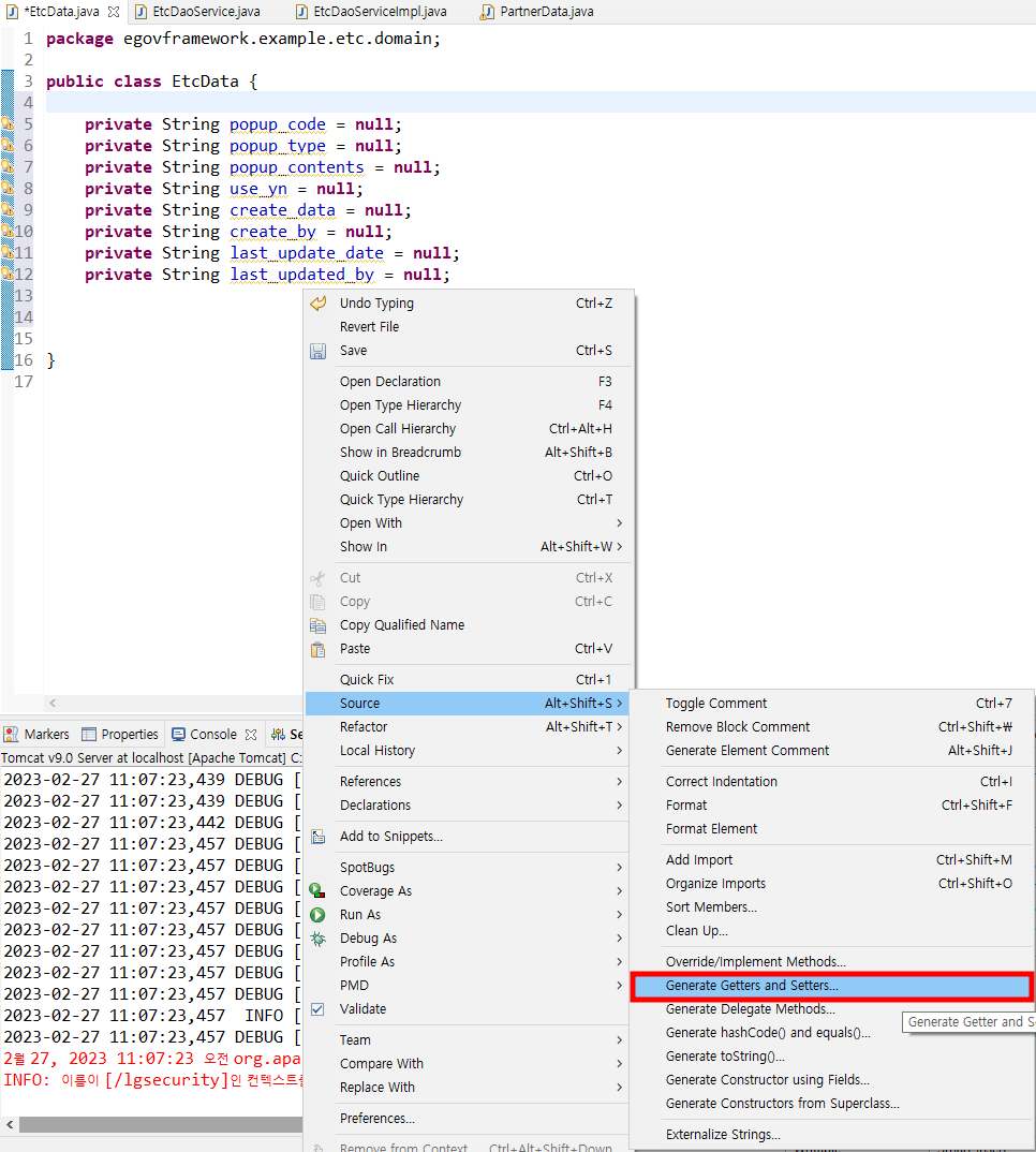 [Egov] 멤버변수 Getter and Setter 메소드 자동 생성하기 본문