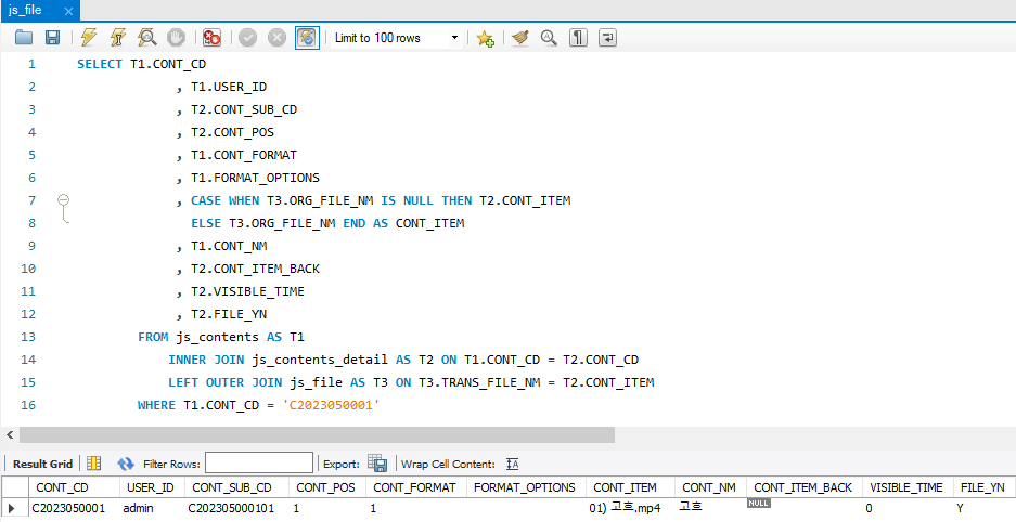 쿼리에서 CASE WHEN 구문을 이용하여 검색하여, 원하는 결과를 얻을 수 있었음