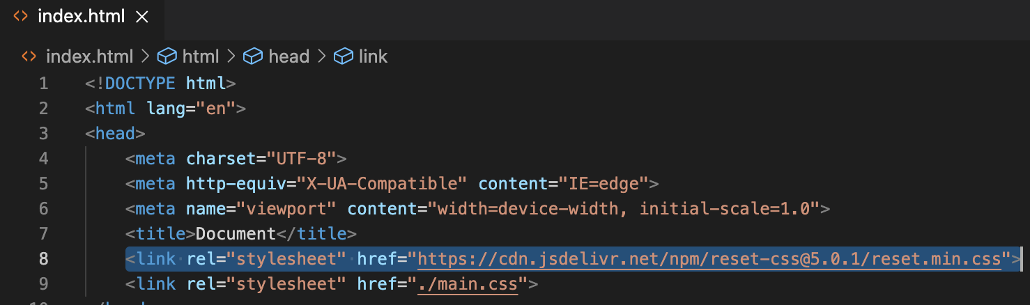 <link rel="stylesheet" href="https://cdn.jsdelivr.net/npm/reset-css@5.0.1/reset.min.css">