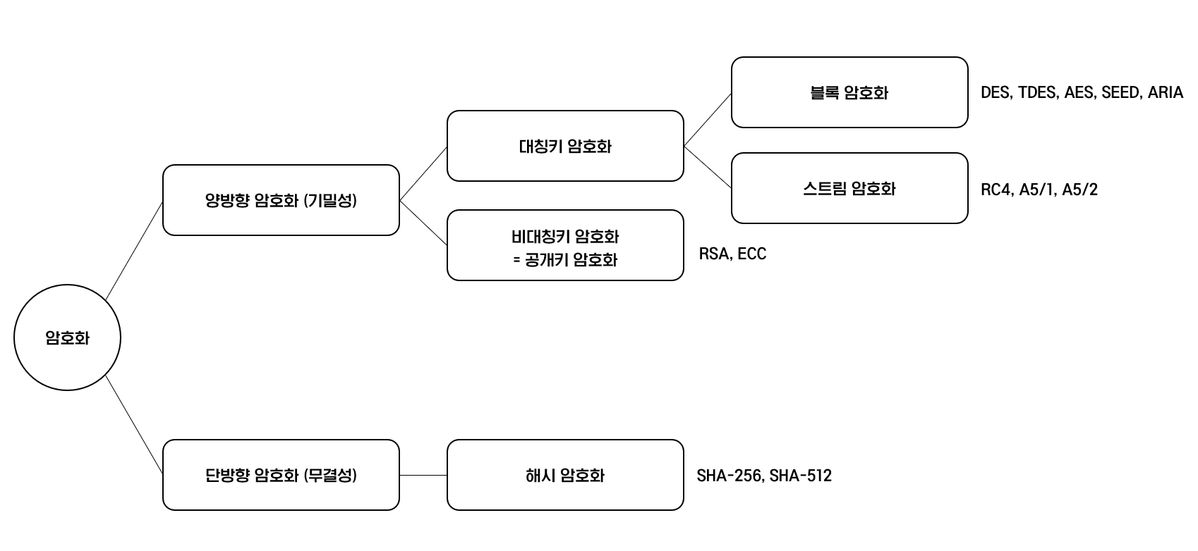 | SEED | 블록 암호 | 128비트 | 128비트 | 한국 KISA 개발, 국가 표준, 금융기관에서 사용 |